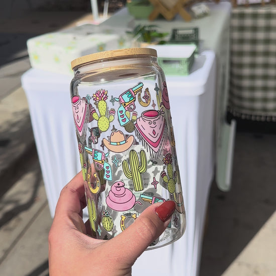 This Western Girly Glass Cup adds some flair to your everyday drinkware. Show off your fun and playful side with this unique cup, perfect for any occasion. From coffee to cocktails, stand out with this quirky and stylish glass!